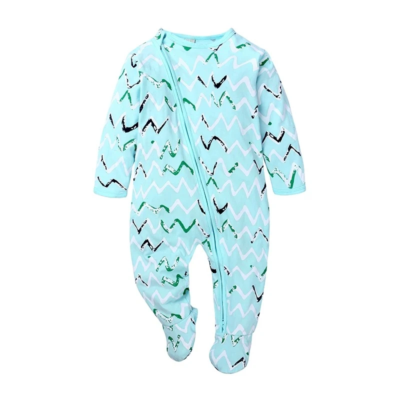 Double-ended zippered baby pajamas, cotton, spring and autumn, for infants and toddlers, footed crawling romper, newborn long-sleeved bodysuit.