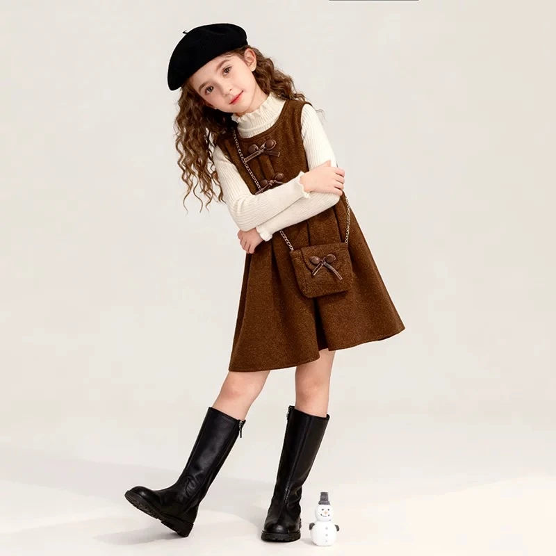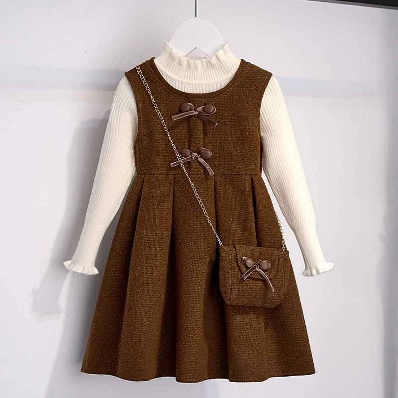 Girls' winter dress children's thick dress two-piece set