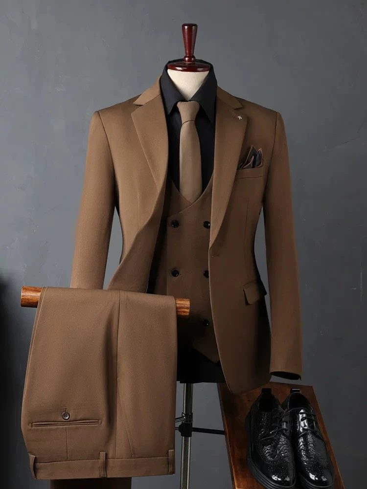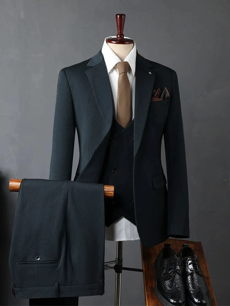 Fanum Men's Suit Set, Elegant Three-Piece Formal Suit, Suitable for British Businessmen, Groom's Wedding Attire