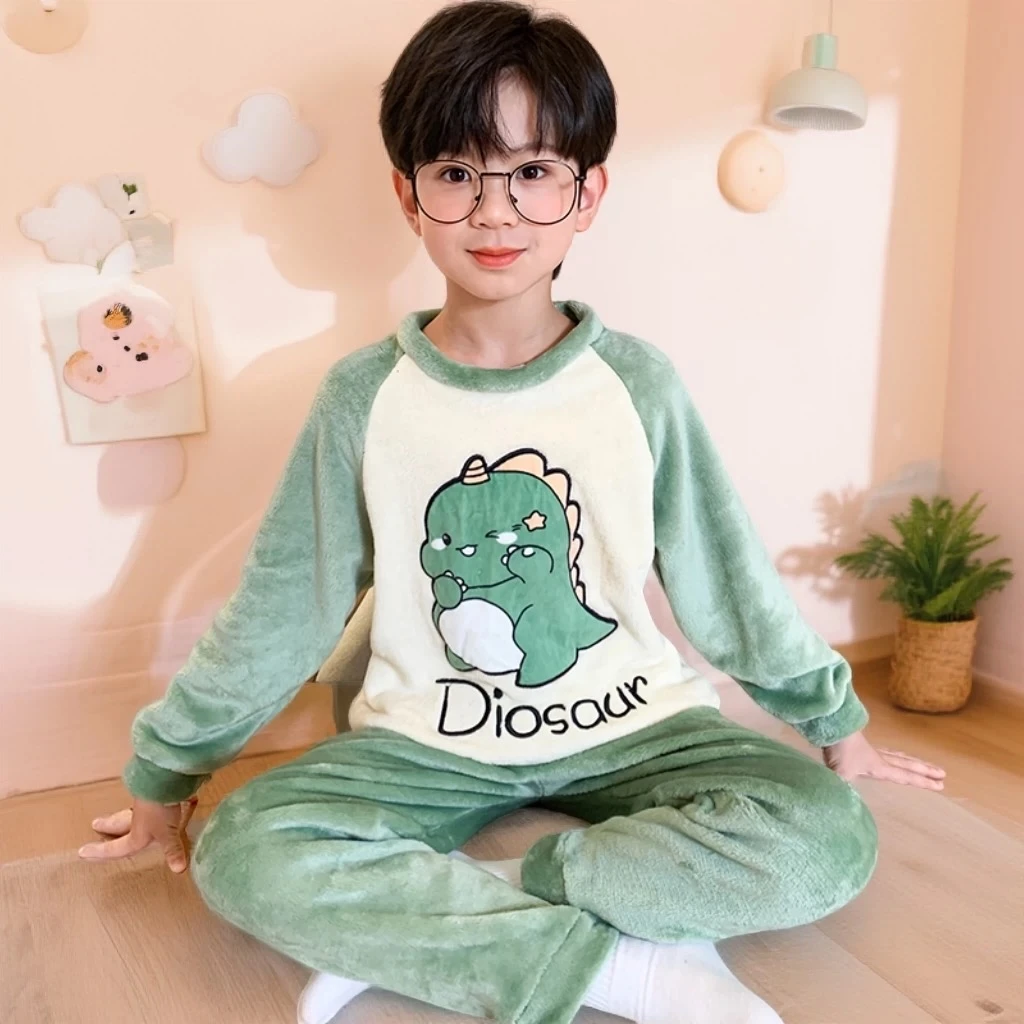 Children's coral fleece pajamas, thickened autumn and winter style, flannel home wear set for medium and large children and babies.