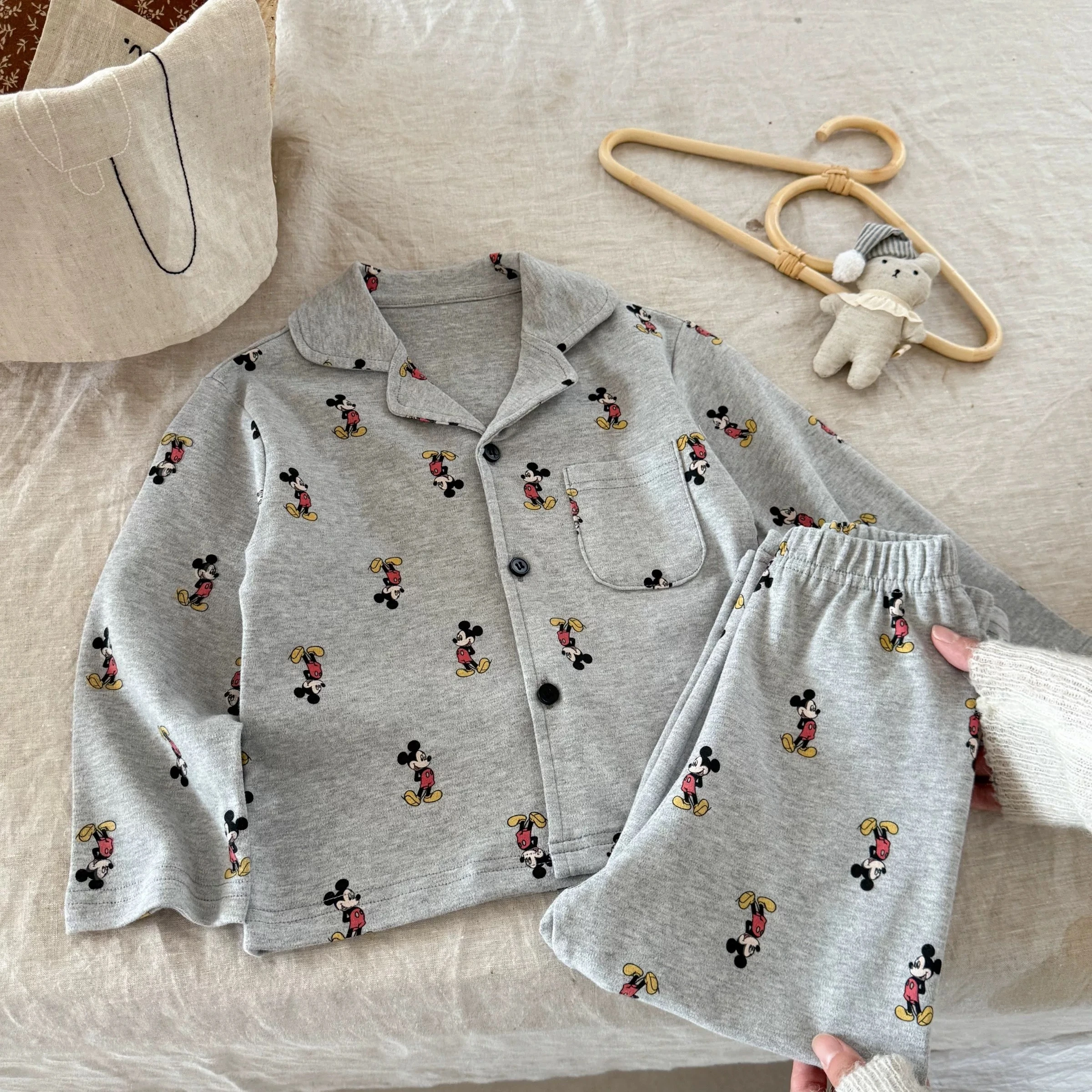 Children's loungewear autumn cartoon Mickey Mouse cardigan baby toddler pajamas