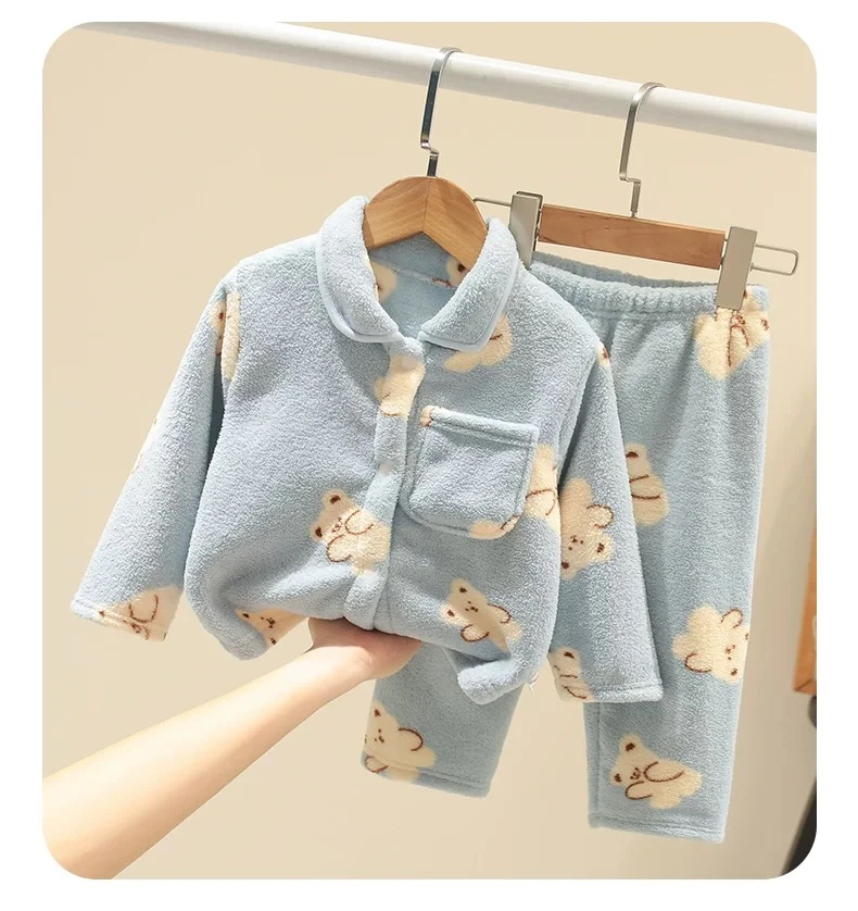 children's pajama sets for boys and girls, winter fleece-lined and thickened home wear.
