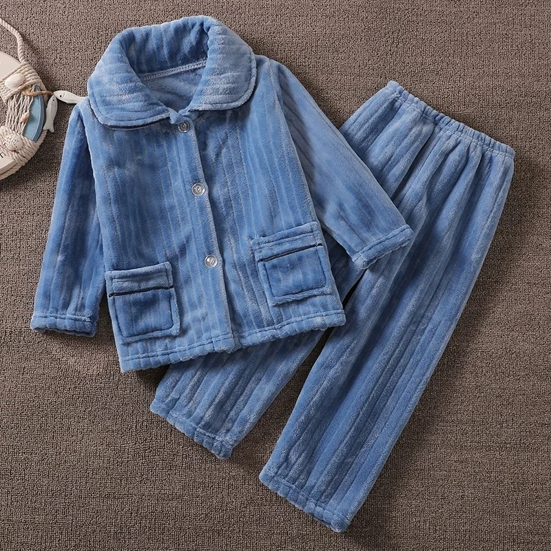 winter children's flannel pajamas, girls' and boys' coral fleece sets, thickened home wear for kids and girls.