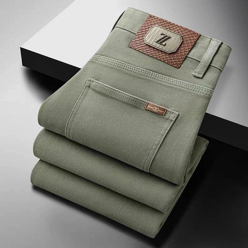 Classic luxury versatile men's jeans in the American style, new design for this winter, stretchy emerald green color, long pants for middle-aged men.