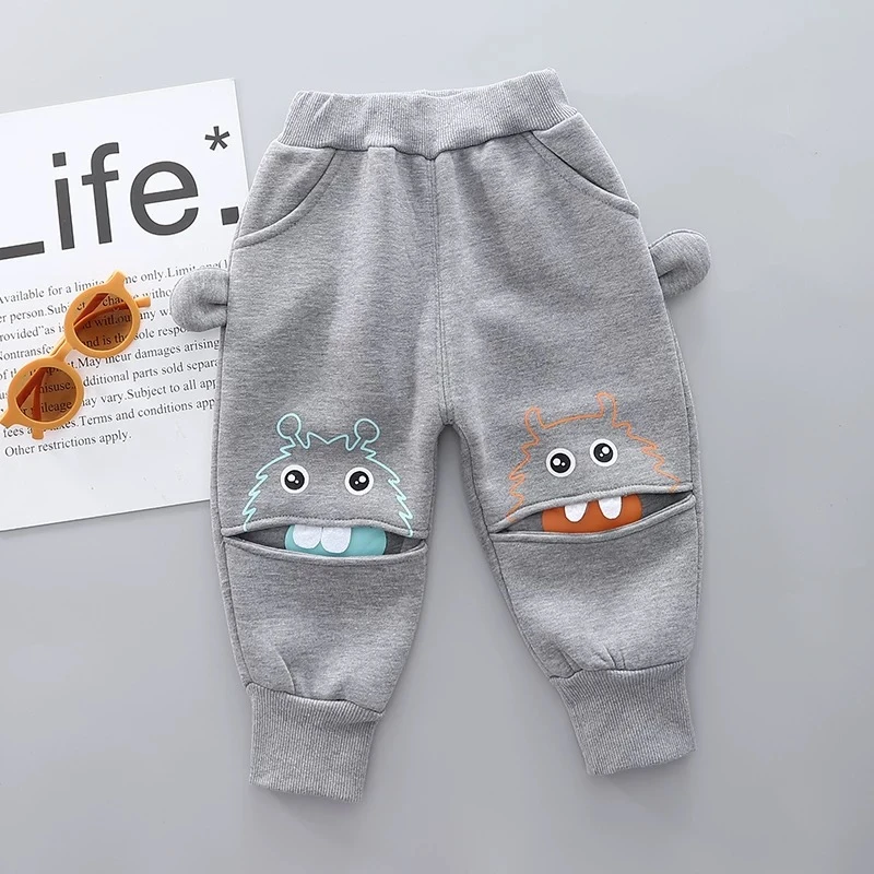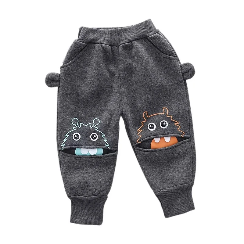 Baby fleece-lined pants, autumn and winter style, boys' one-piece fleece long pants, children's thick cotton pants, trendy toddler casual thin fleece pants
