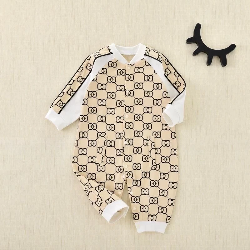 New style baby romper, thin pure cotton, spring and autumn, for baby boys, long-sleeved, suitable for outdoor use, newborn clothes with all-over print.