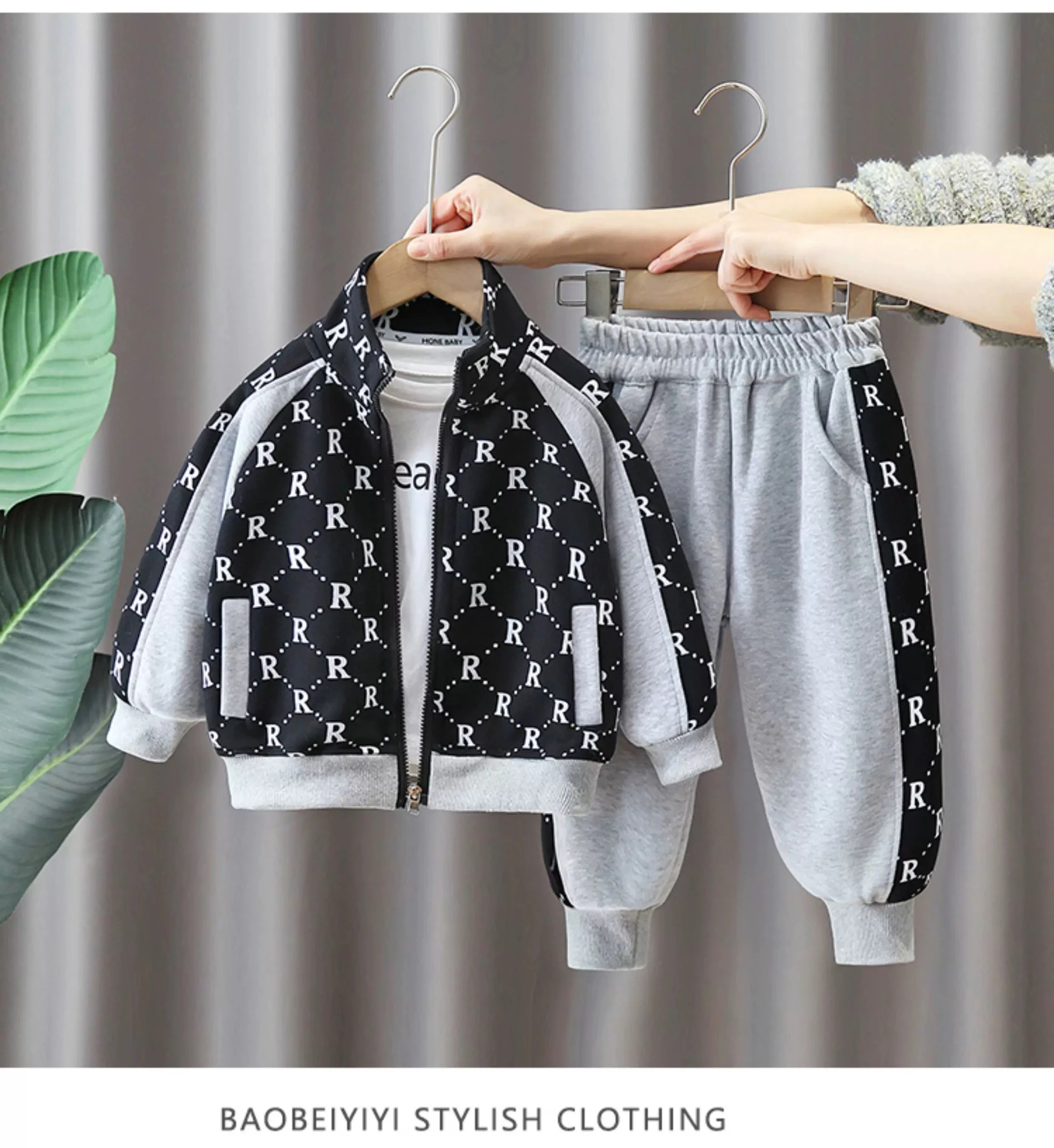 Boys' Fleece-Lined Suit Set, Autumn/Winter Casual Sports Zipper Jacket, Stylish Two-Piece Set for Medium and Large Children