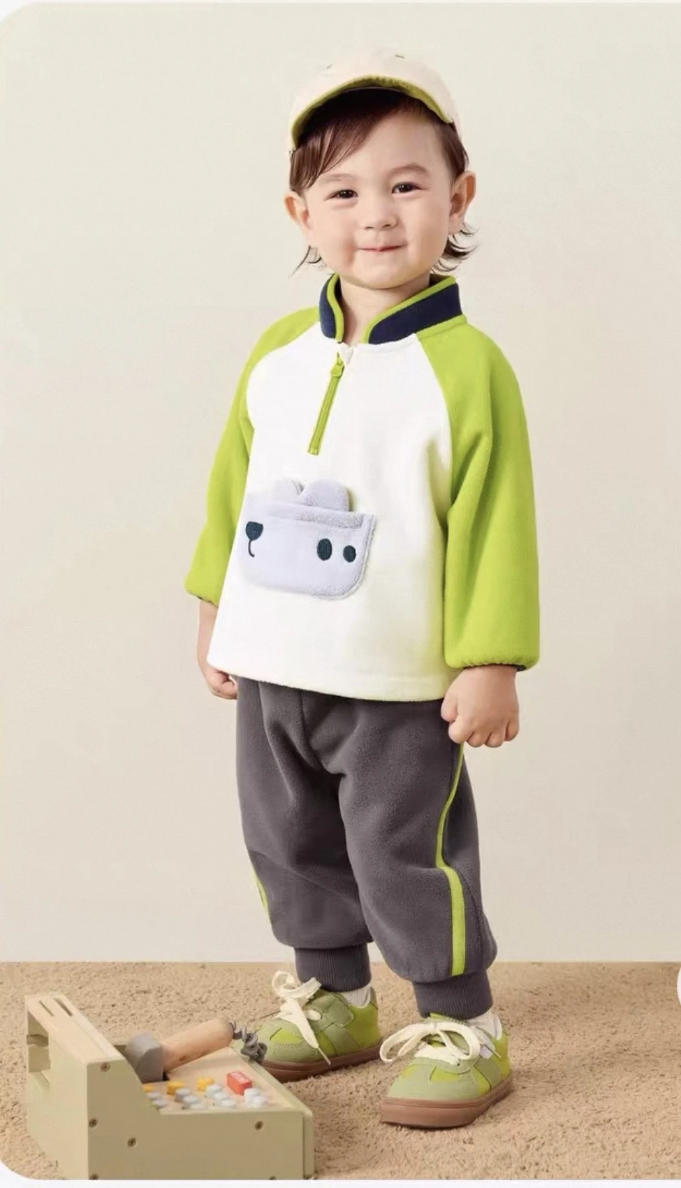 【Anti-static fleece】Boys and girls' long-sleeved short fleece set - Anti-static fleece, cute sweatshirt and pants