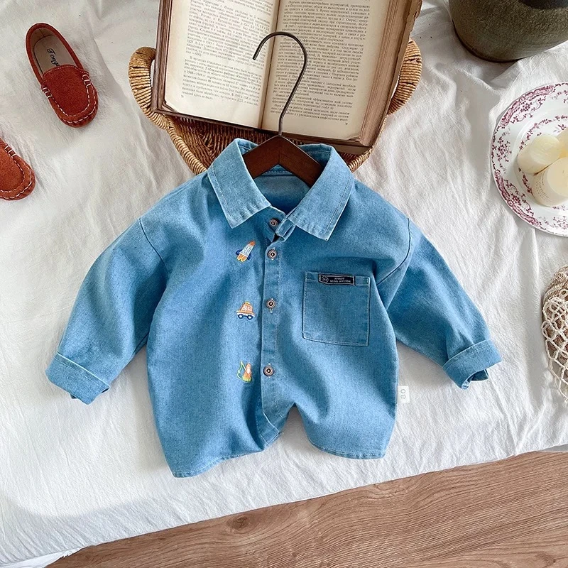 children's set, stylish and fashionable children's vest sweater and denim shirt, baby three-piece set.