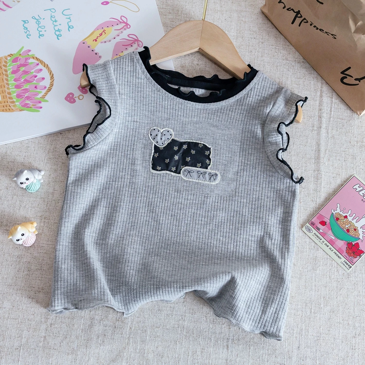 Summer Vest Set for Girls - Outfit with Ruffled Trim Top and Polka Dot Skirt