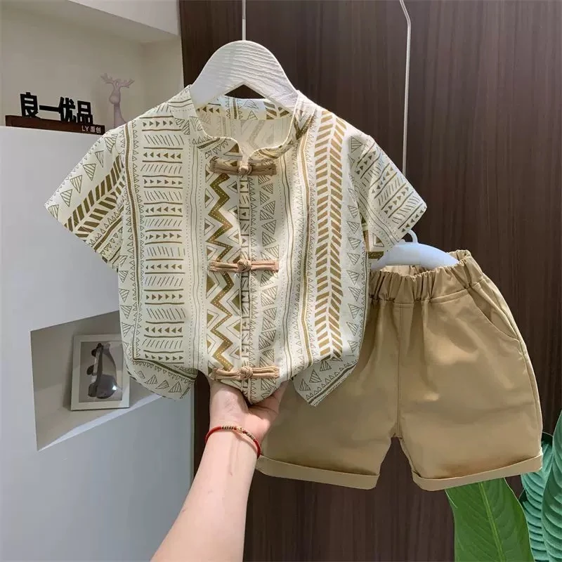 New Chinese style summer outfit for boys, children's ancient style Hanfu, national trend baby summer thin short-sleeved clothes