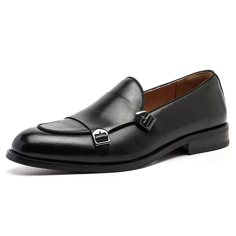 Men's leather slip-on shoes, British style, easy to wear, suitable for work and casual occasions, with a double buckle, versatile men's shoes, wedding shoes