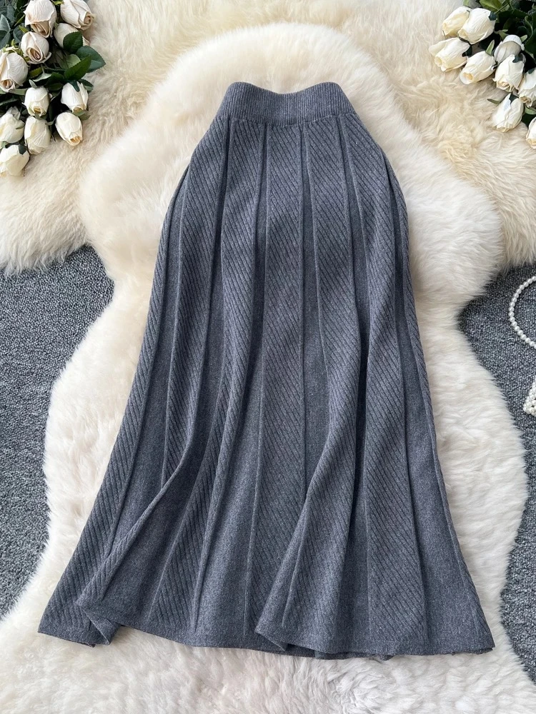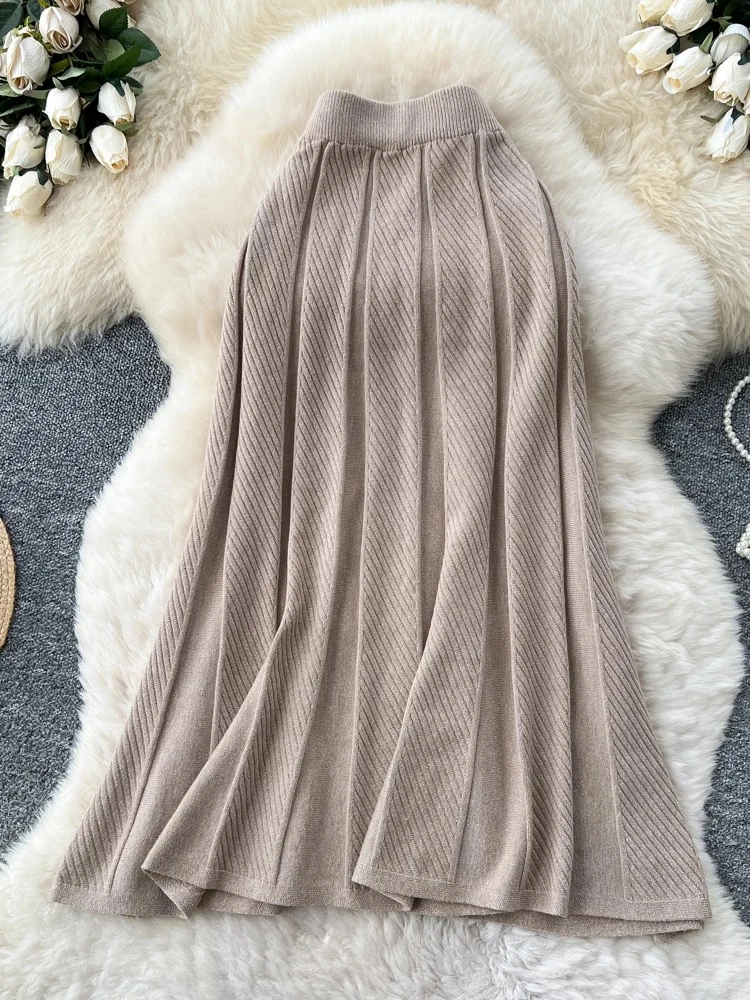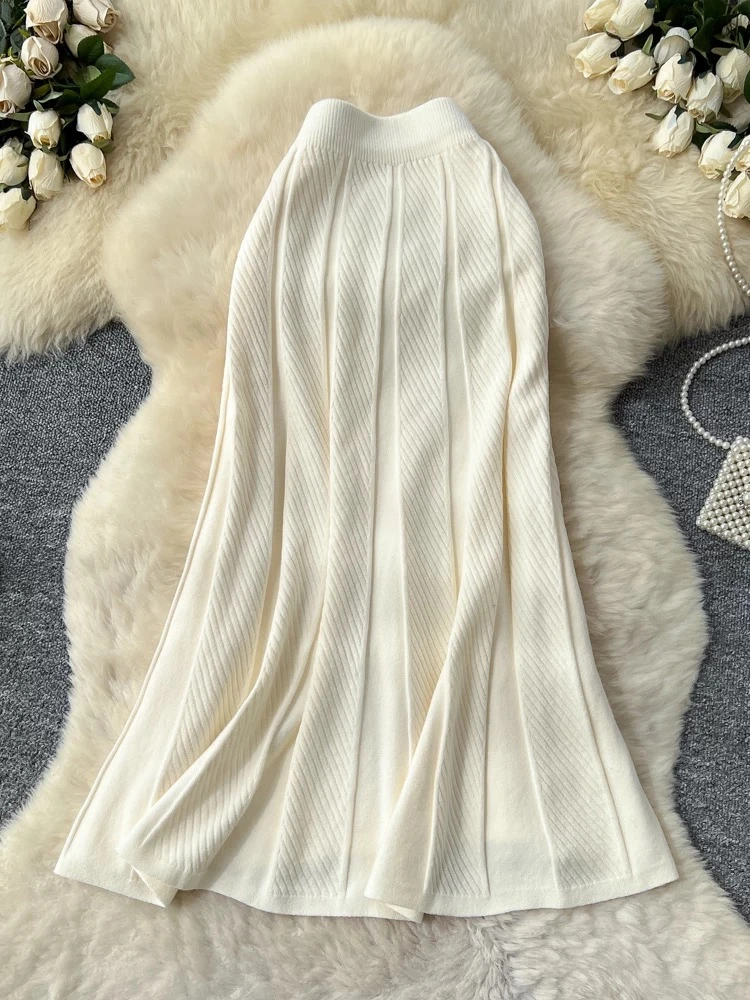 High-quality knitted midi skirt for women, new autumn/winter style, elastic waist, slim and elegant dress.