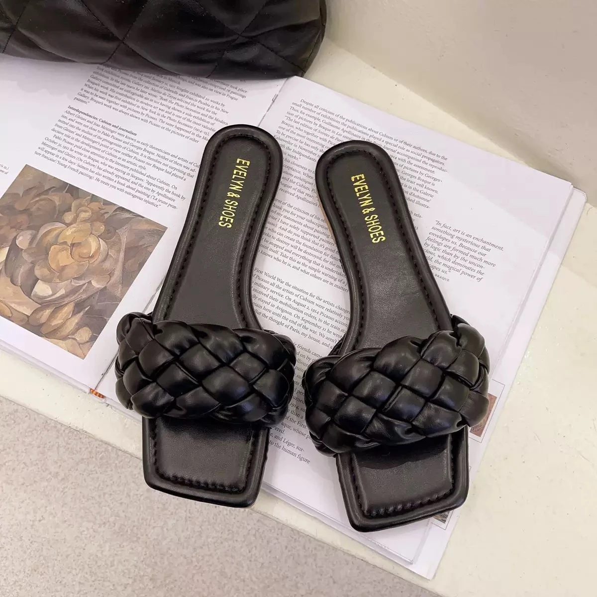 New women's woven flat summer slippers, with a fairy-like design, stylish and practical, open toe, square toe, comfortable sandals.