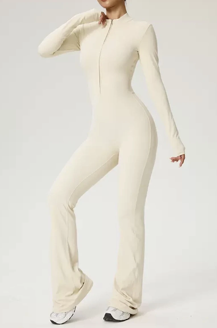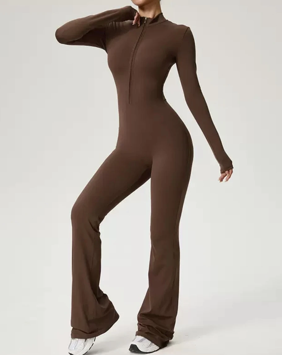 Amazon long-sleeved yoga suit with zipper, soft to the touch, suitable for high-intensity fitness exercises, one-piece tight fit