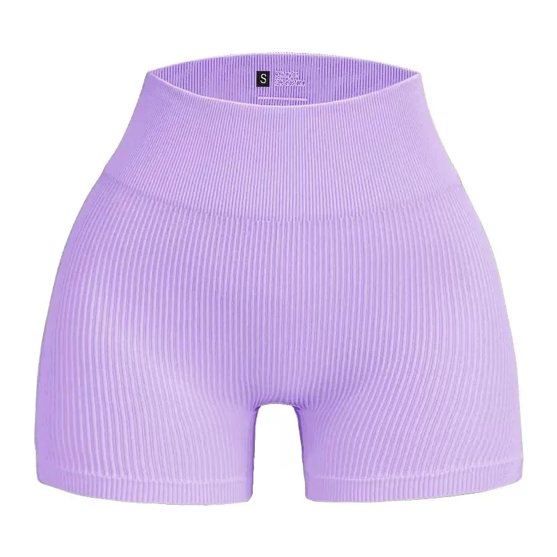 Seamless ribbed yoga shorts, European and American style, three-quarter length yoga pants, quick-drying, seamless athletic leggings for cycling, high-waisted, suitable for fitness