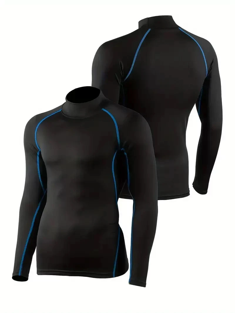 European and American sizes, suitable for home fitness, men's high-elasticity training sportswear, warm, tight-fitting, high-neck, long-sleeved outdoor sportswear