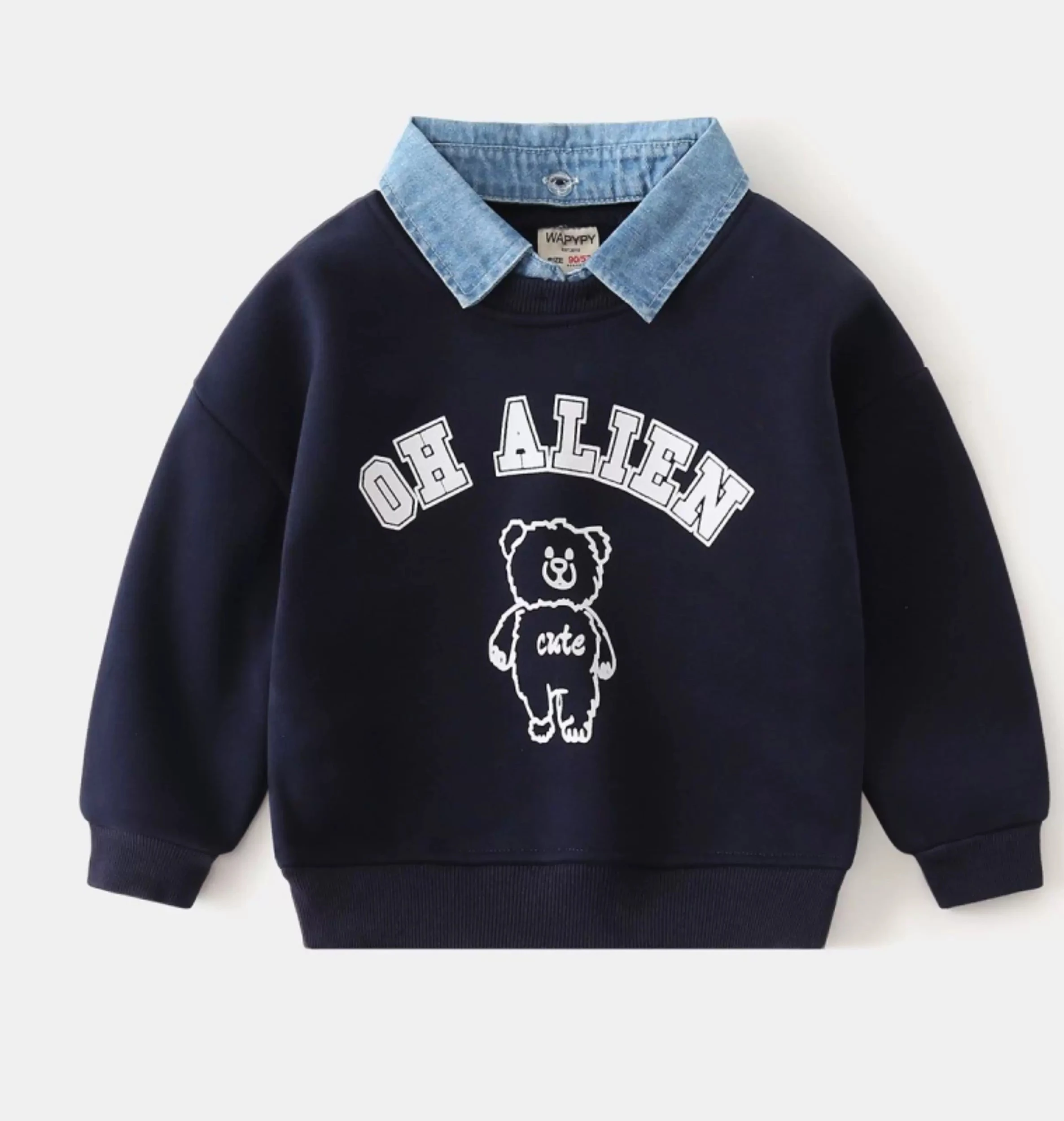 Boys' long-sleeved sweatshirt,fake two-piece fleece-lined pullover top