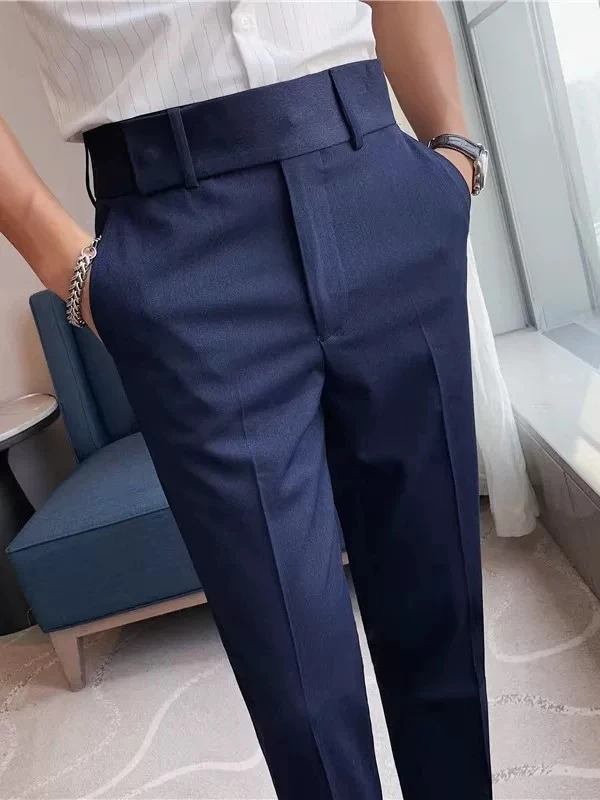 Elegant formal men's trousers from Naples, slim fit, high waist, suitable for work, straight cut.