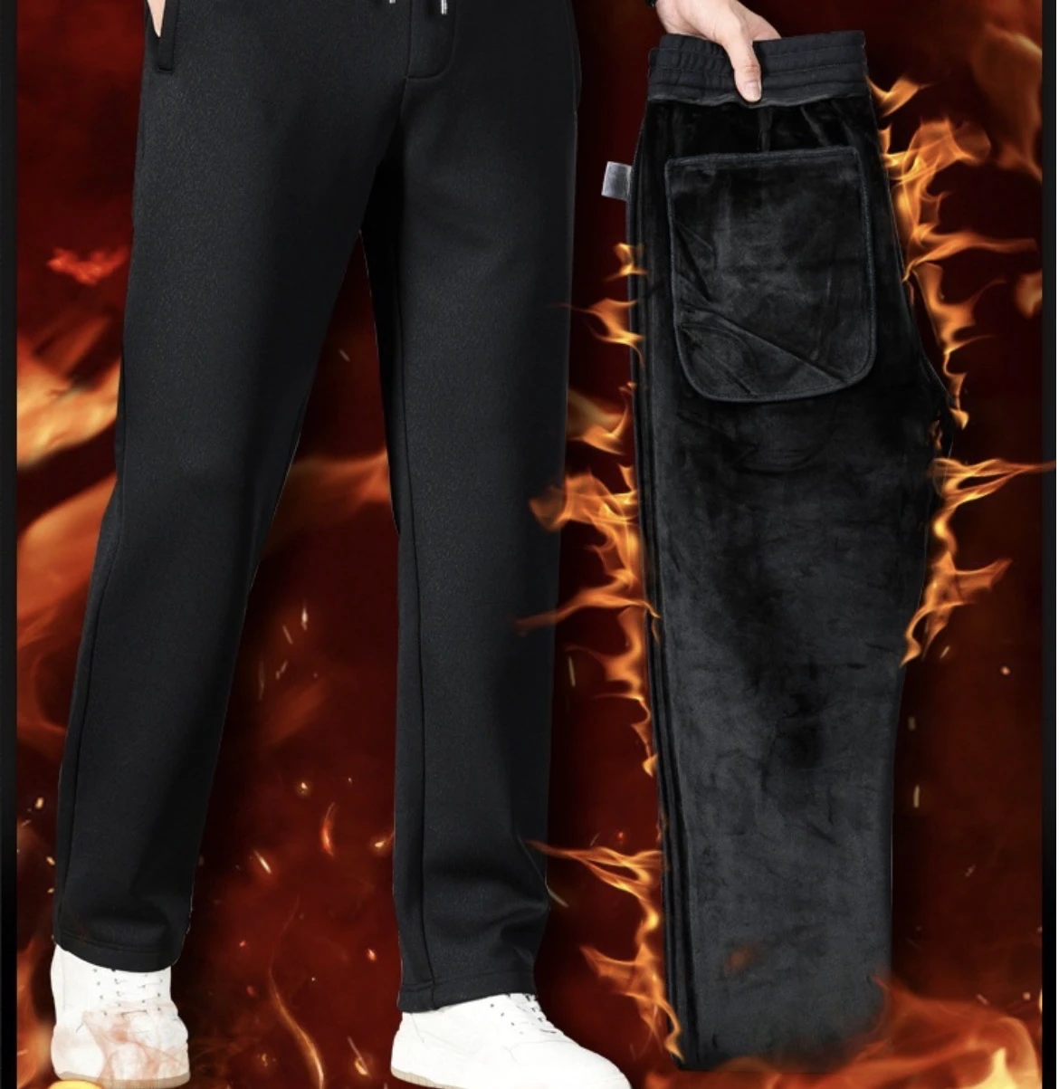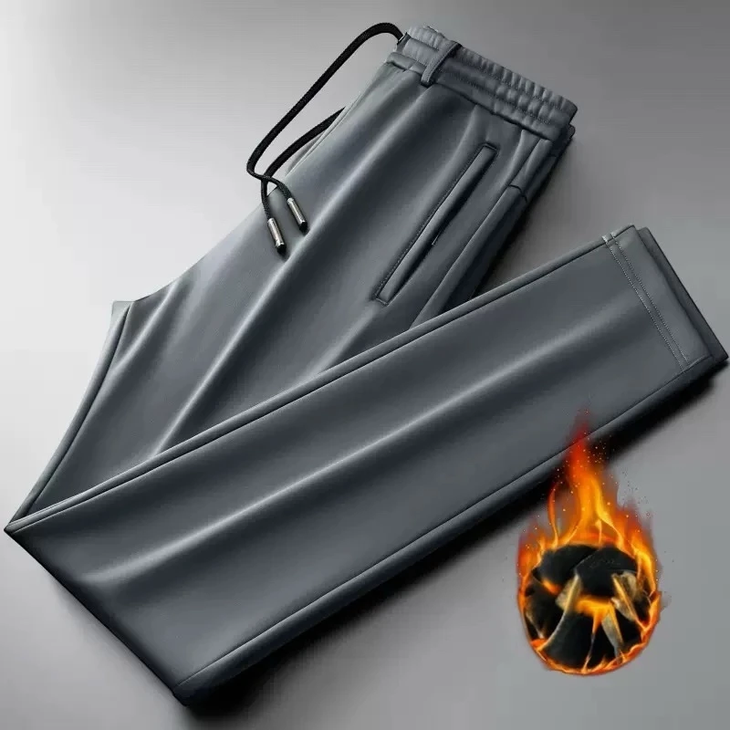 Luxury men's casual trousers, high-quality men's winter trousers, loose-fitting, straight-leg athletic trousers, elastic waistband, thick fur lining