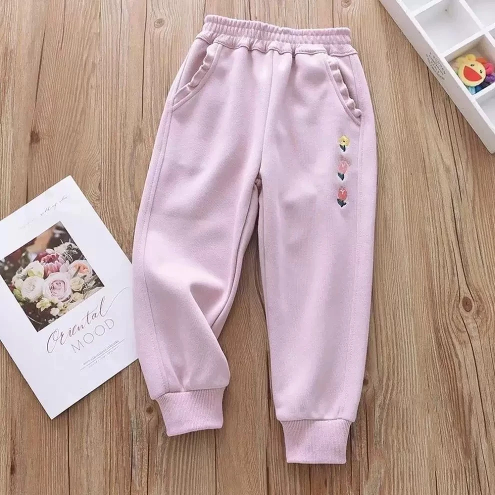 Girls' trousers, spring and autumn outerwear, girls' autumn children's sweatpants, fleece-lined and thickened one-piece fleece sports pants, casual long pants