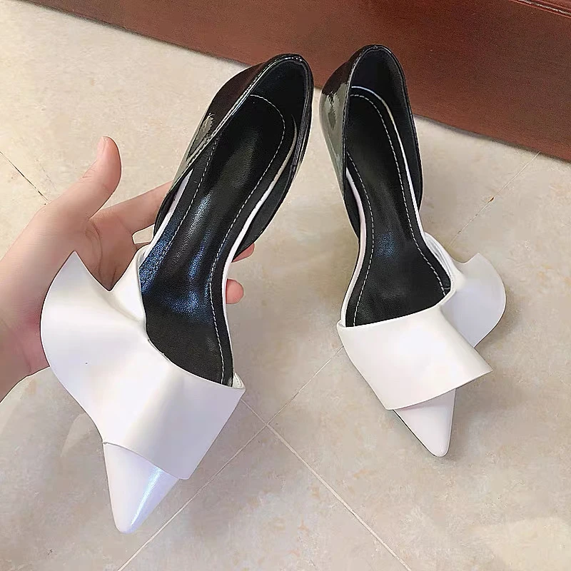European style women's shoes, new autumn collection, patent leather pointed-toe shoes, and elegant flat shoes.