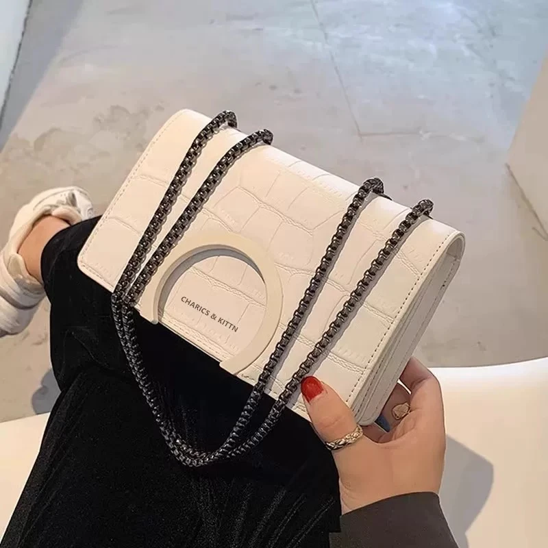 C&K Women's Small Crossbody Bag, Genuine Leather Chain Bag, Autumn and Winter Small Bag, Shoulder Bag.
