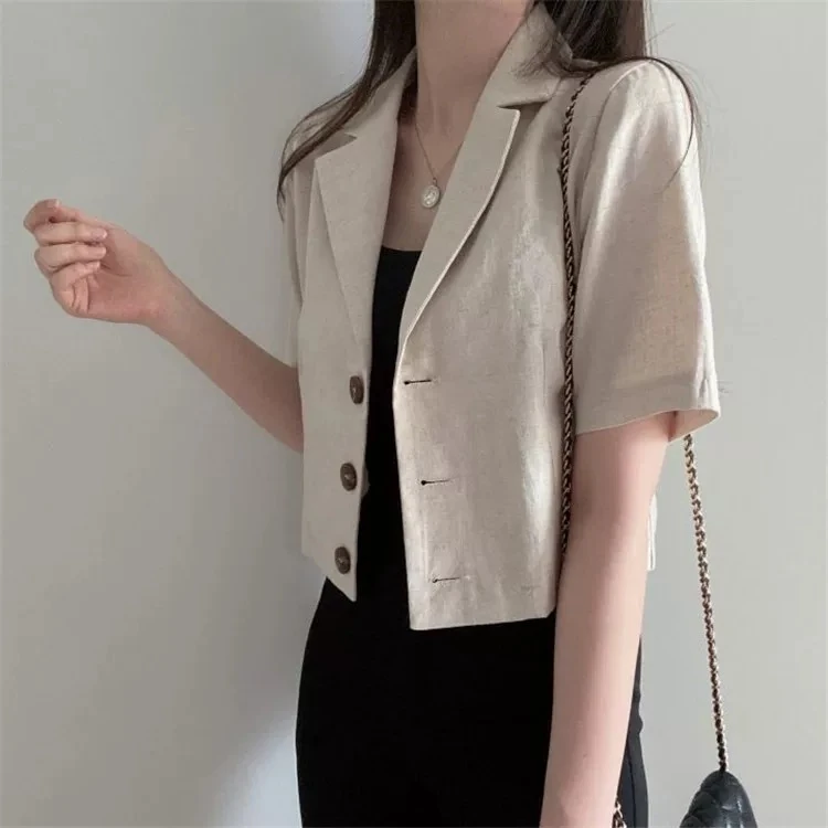 Amazon's independent website, offers a short-sleeved cotton and linen blazer for women, in Japanese and Korean styles.