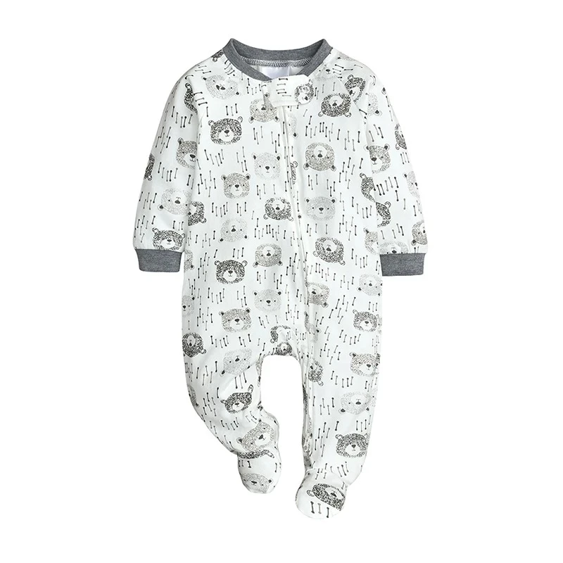 Double-ended zippered baby pajamas, cotton, spring and autumn, for infants and toddlers, footed crawling romper, newborn long-sleeved bodysuit.