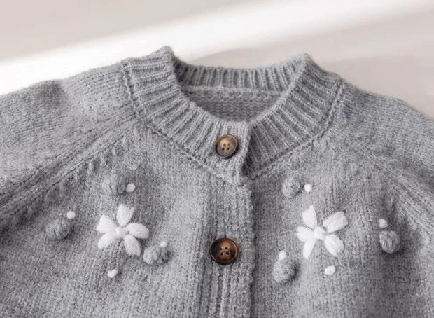 Stylish autumn/winter knitted cardigan for girls, sweet and cute floral top/outerwear for babies.
