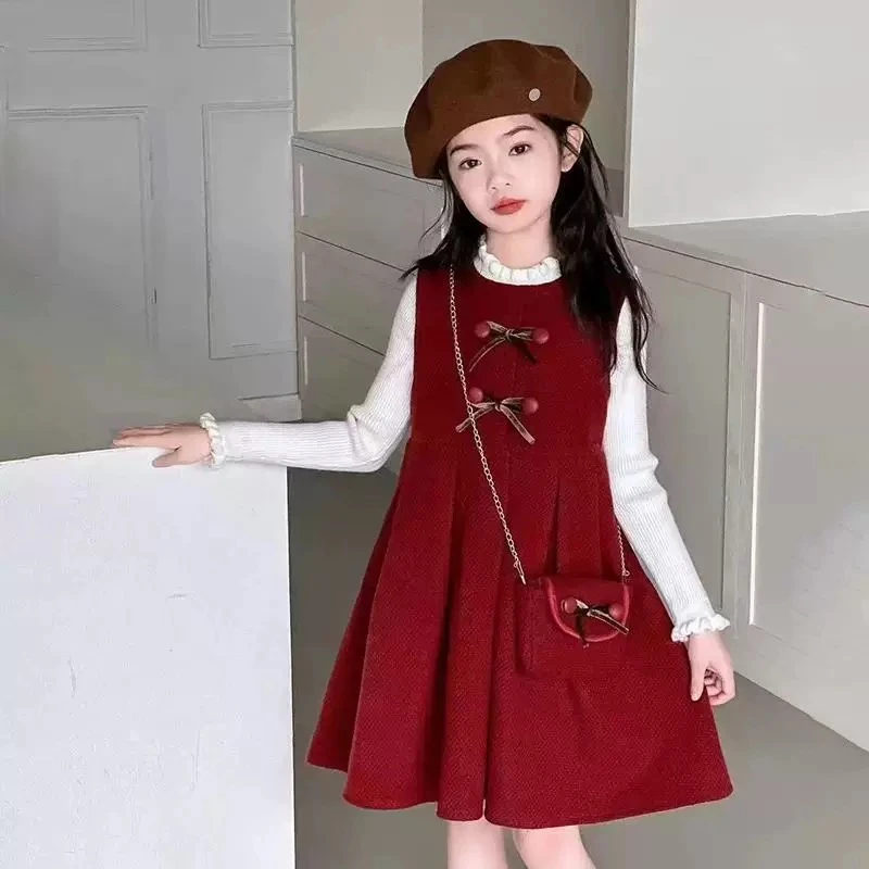 Girls' winter dress children's thick dress two-piece set