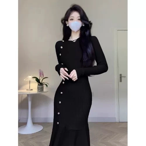 This unique and beautiful fishtail skirt for women is suitable for autumn and winter. It features a light and delicate elegance, in a stylish and appropriate French style. It's a white knit dress with a fitted waist.