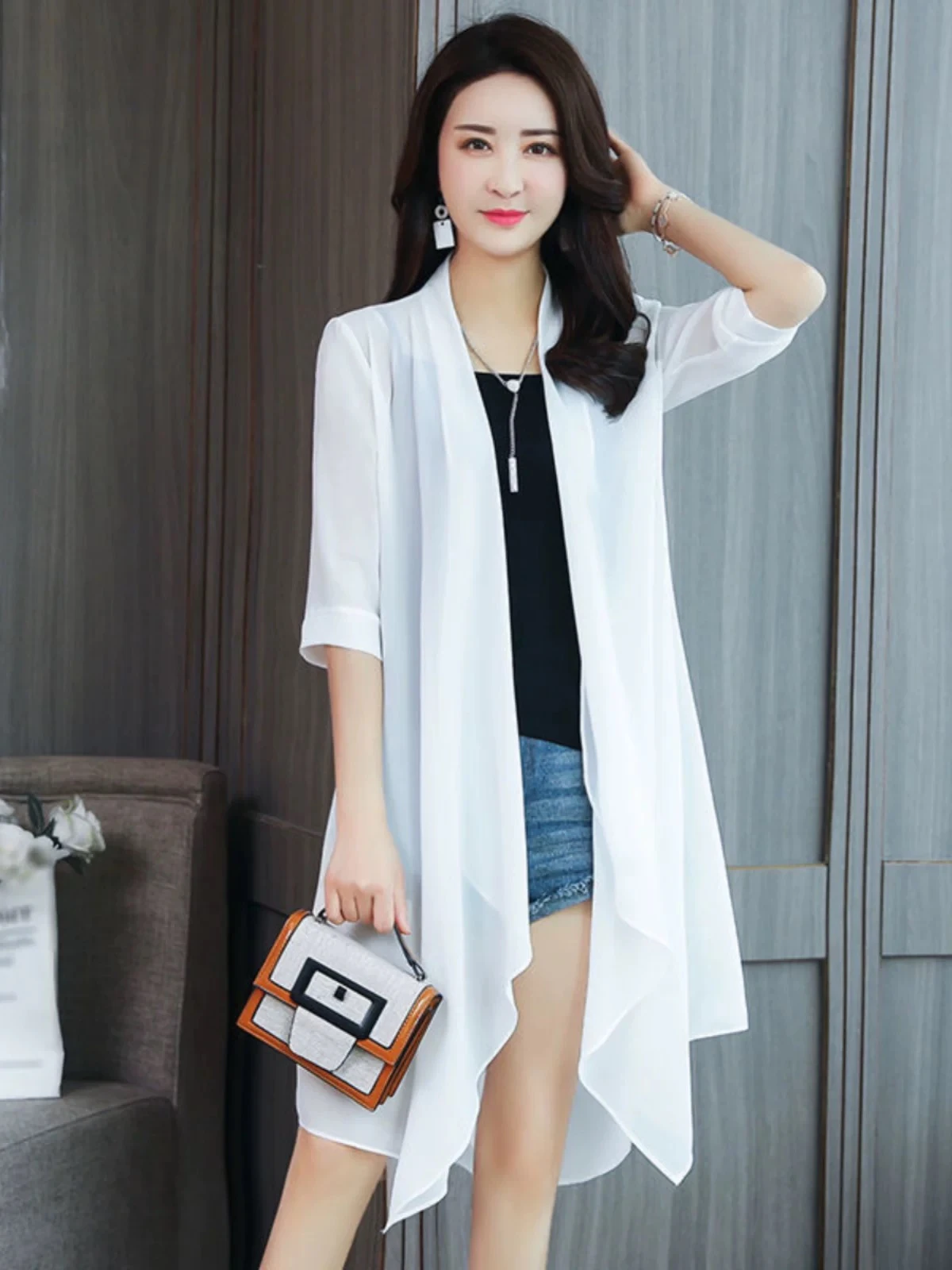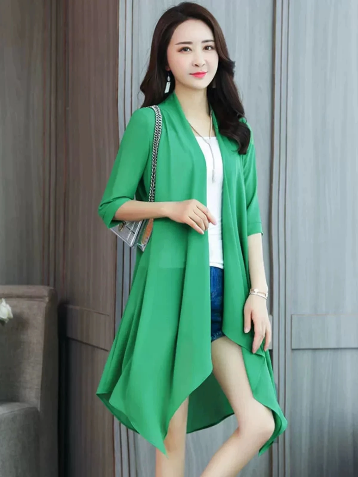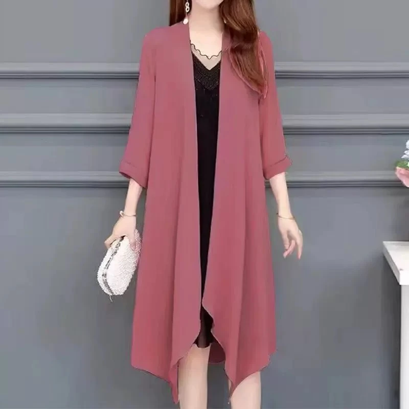 Elegant chiffon blouse for women, loose cut, lightweight, sun-protective jacket, new summer design, plus sizes, shawl, comfortable cardigan.