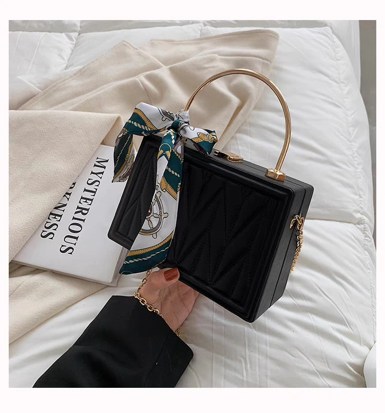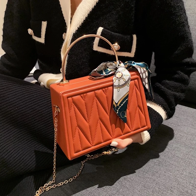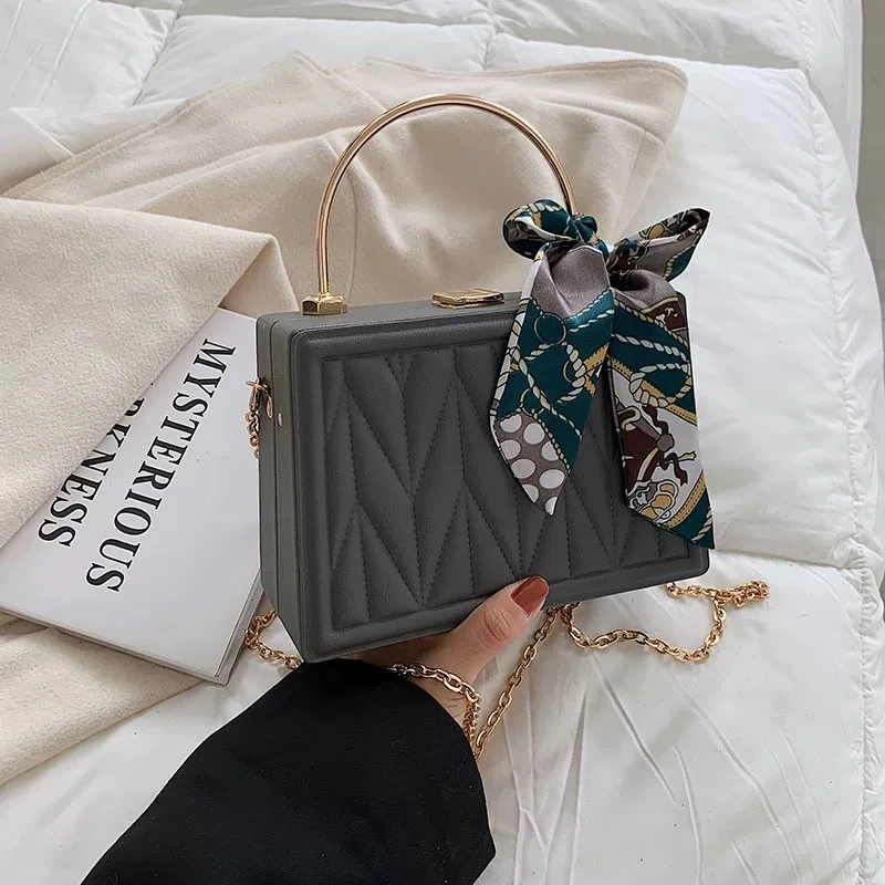 A small, square-shaped handbag with a new Korean design, versatile for women, decorated with pleated embroidery and a chain, suitable for carrying on the shoulder or over the shoulder.