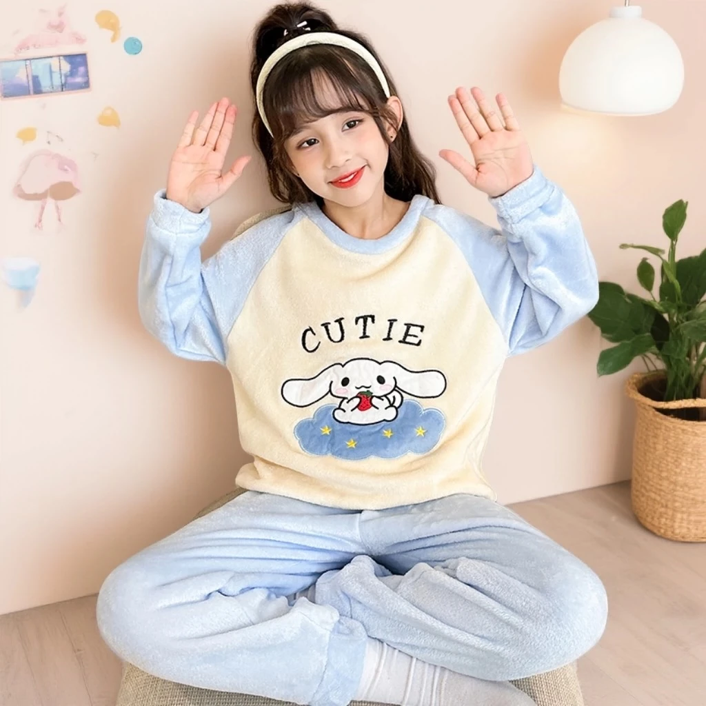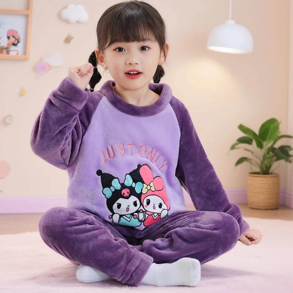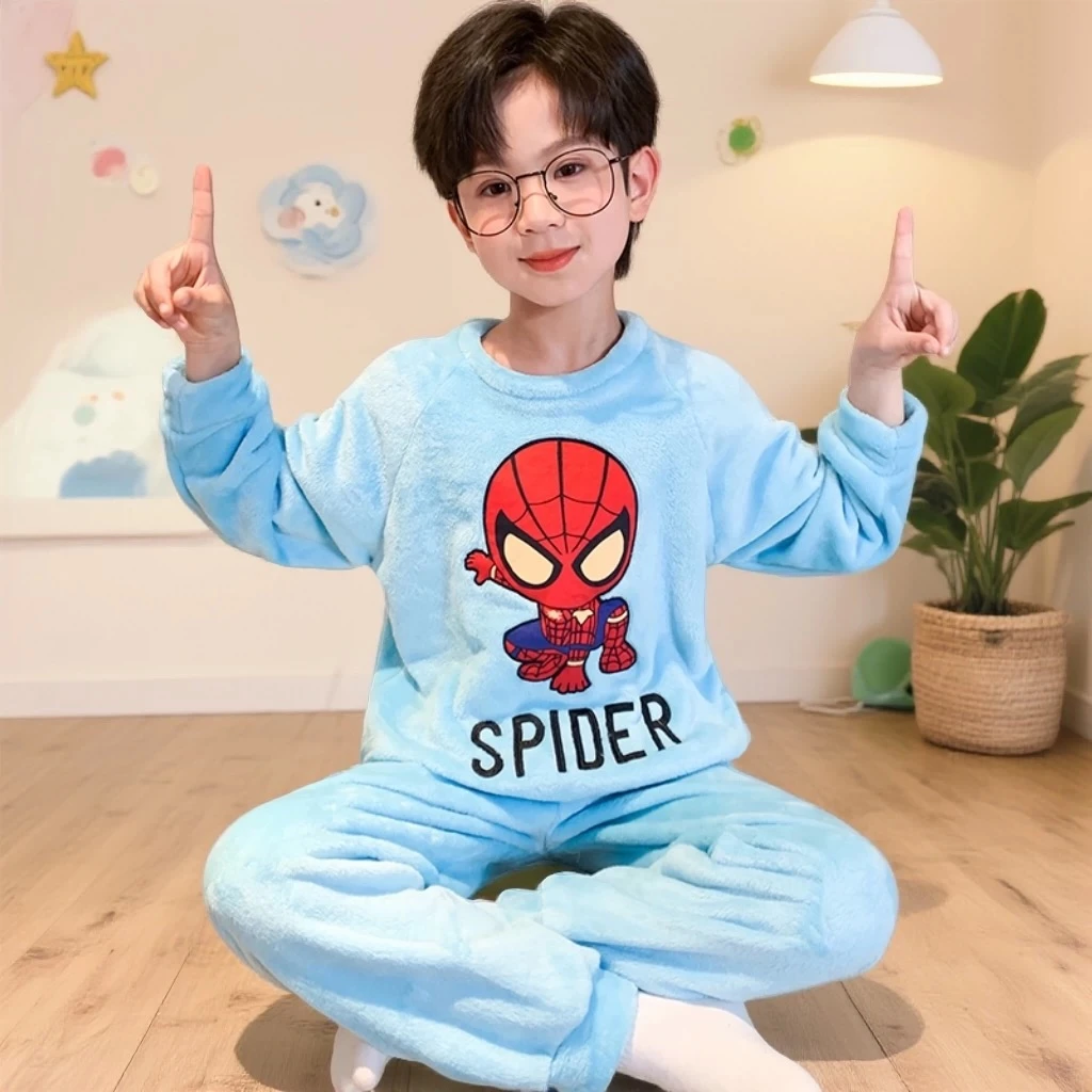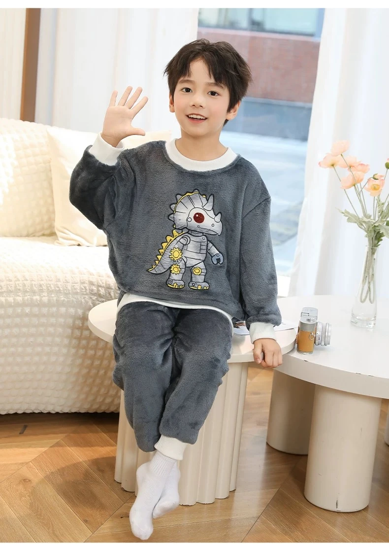 Children's coral fleece pajamas, thickened autumn and winter style, flannel home wear set for medium and large children and babies.