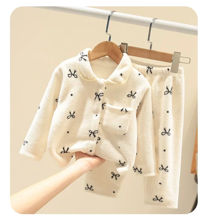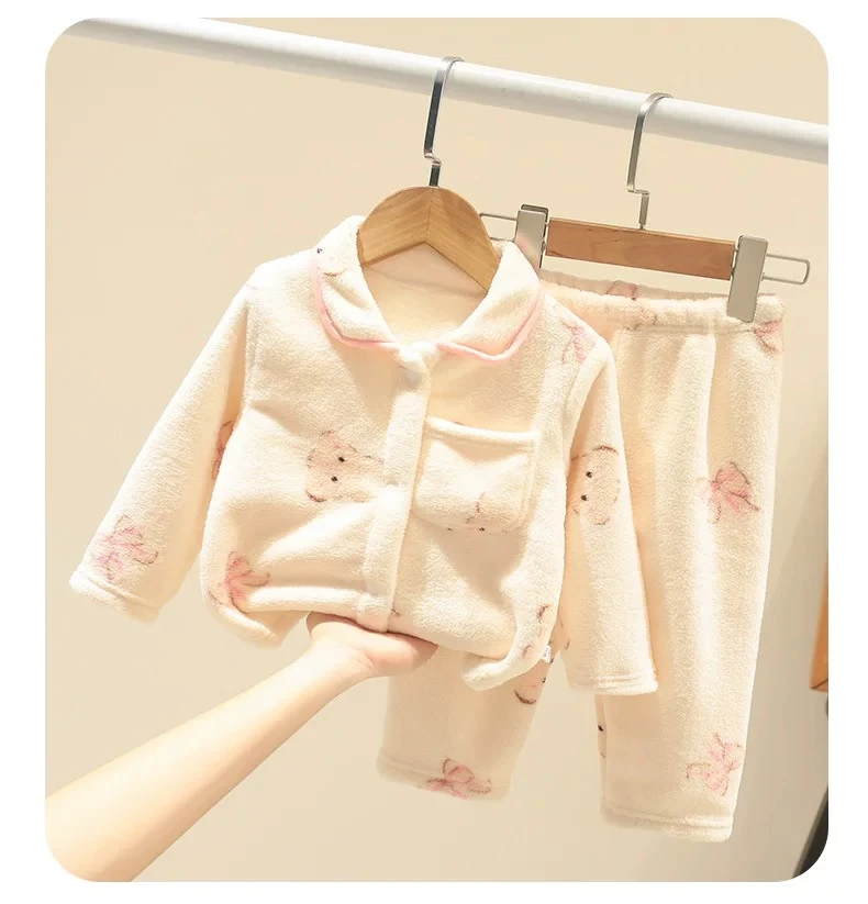 children's pajama sets for boys and girls, winter fleece-lined and thickened home wear.