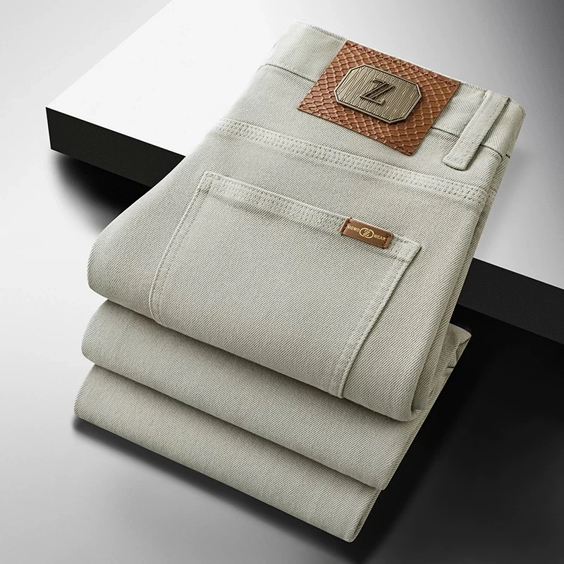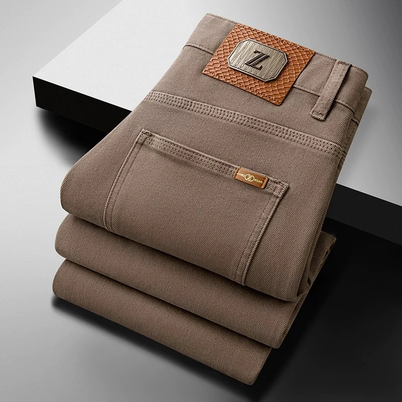 Classic luxury versatile men's jeans in the American style, new design for this winter, stretchy emerald green color, long pants for middle-aged men.