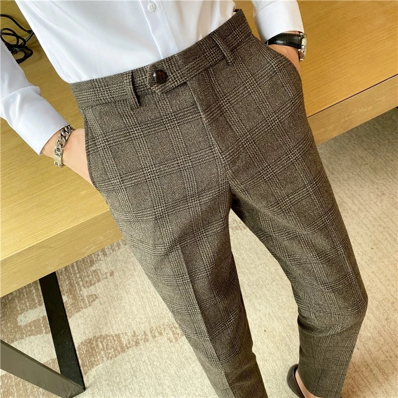 Men's houndstooth check pattern suit pants, slim fit, formal pattern suit pants suitable for spring and autumn, straight cut, slim fit, casual pants.