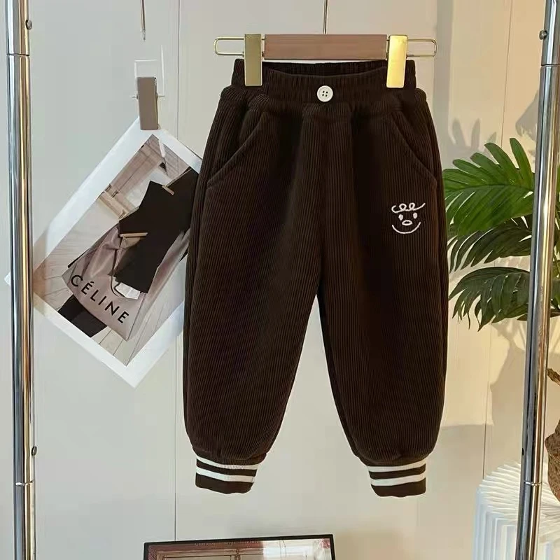 Children's fleece-lined thickened pants, warm for autumn and winter, unisex, lamb fleece, loose-fitting casual pants, new style long pants.