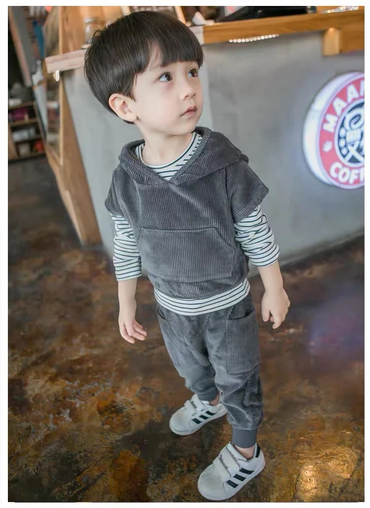 Boys' Children's Spring and Autumn Clothes - Corduroy Three-Piece Set - Trendy