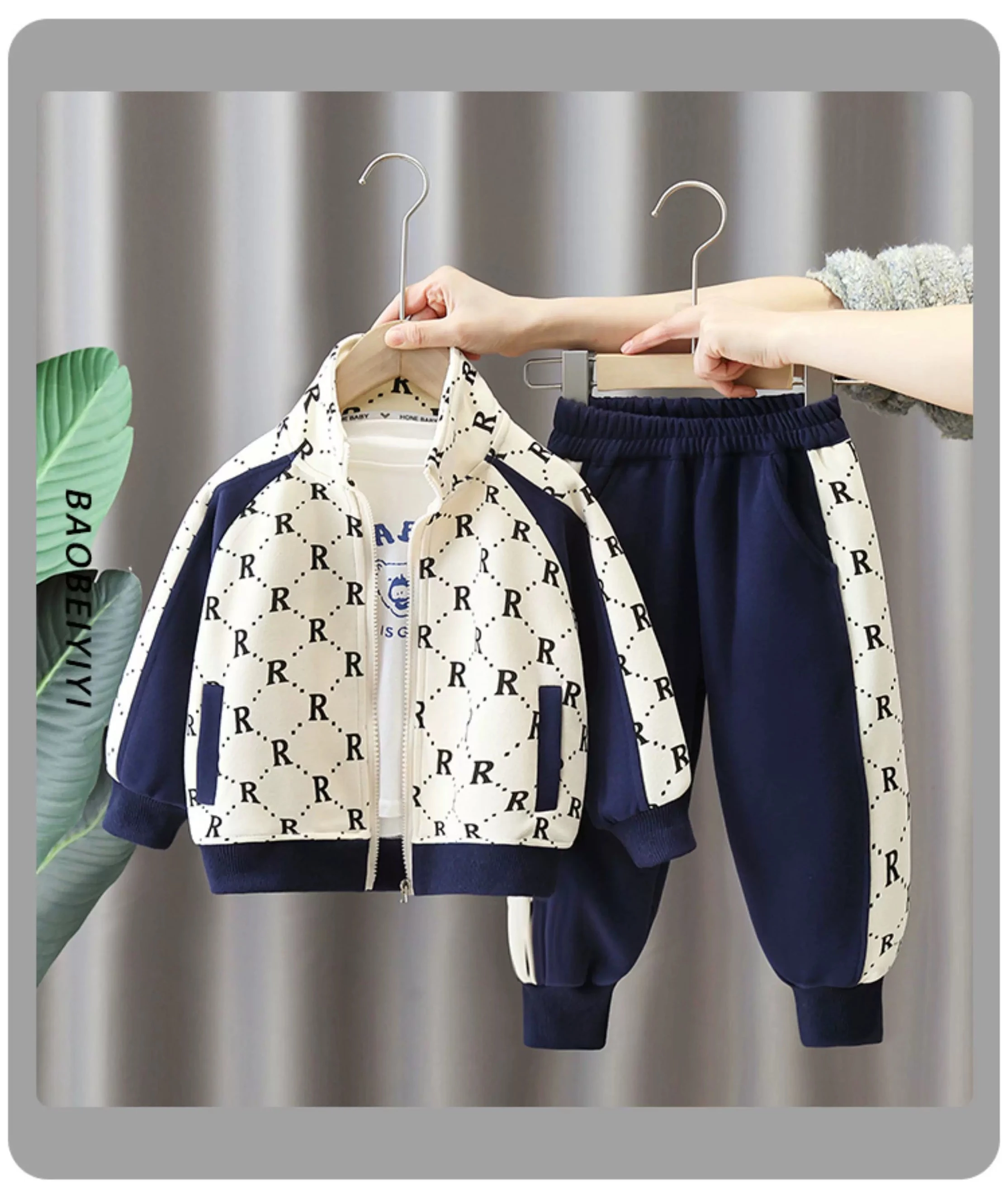 Boys' Fleece-Lined Suit Set, Autumn/Winter Casual Sports Zipper Jacket, Stylish Two-Piece Set for Medium and Large Children