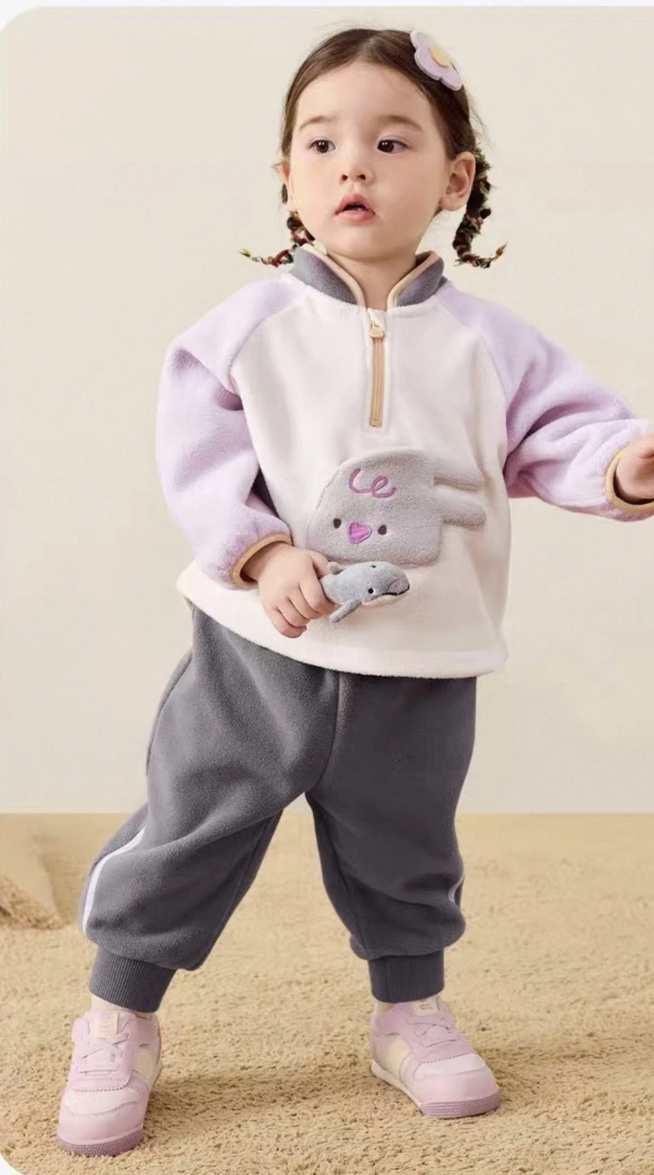 【Anti-static fleece】Boys and girls' long-sleeved short fleece set - Anti-static fleece, cute sweatshirt and pants