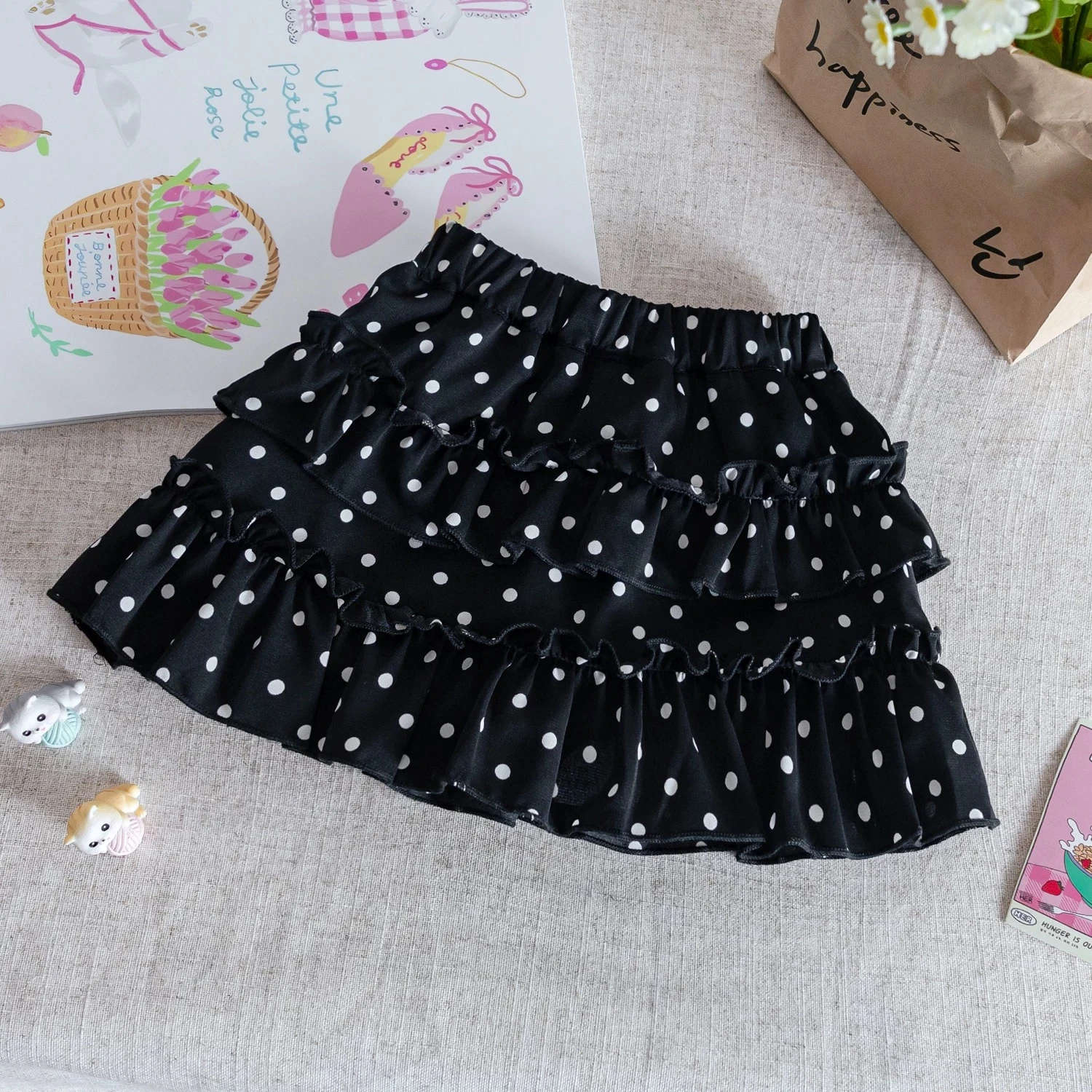 Summer Vest Set for Girls - Outfit with Ruffled Trim Top and Polka Dot Skirt