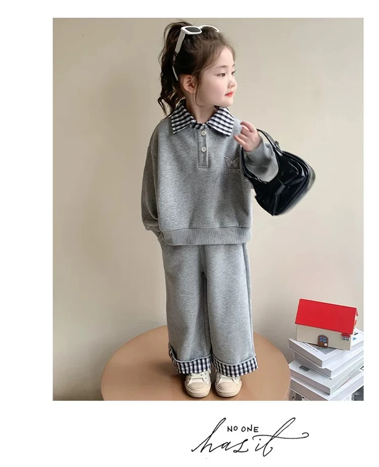 Girls' School Style Two-Piece Set - Stylish and Trendy Wide-Leg Pants
