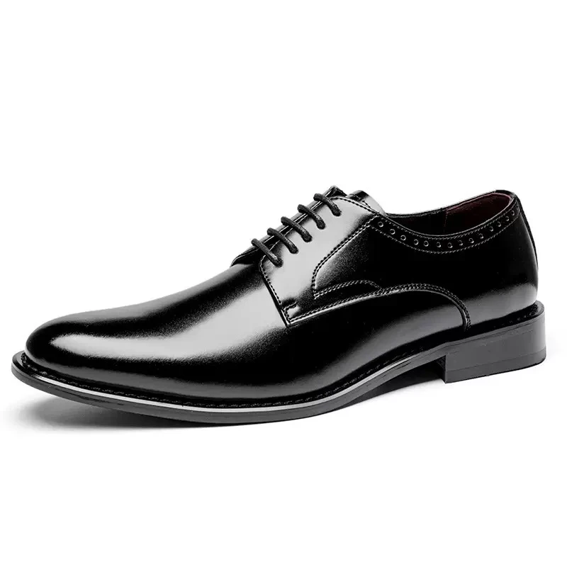 Men's leather shoes, genuine leather, British style, glossy finish, formal business shoes, men's leather derby style shoes for work and commuting, height-increasing shoes.