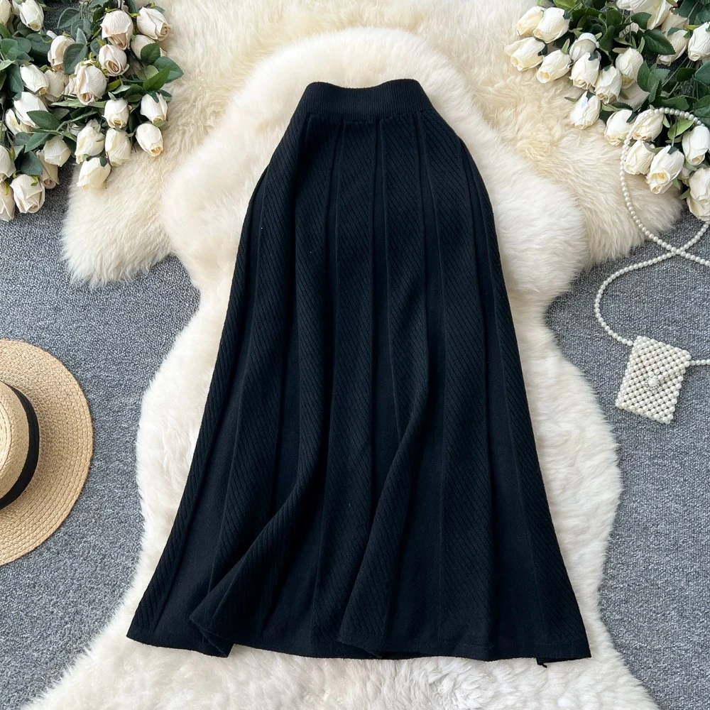 High-quality knitted midi skirt for women, new autumn/winter style, elastic waist, slim and elegant dress.