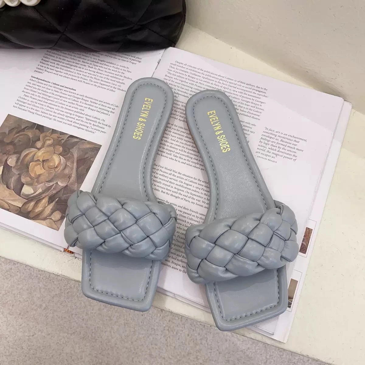 New women's woven flat summer slippers, with a fairy-like design, stylish and practical, open toe, square toe, comfortable sandals.