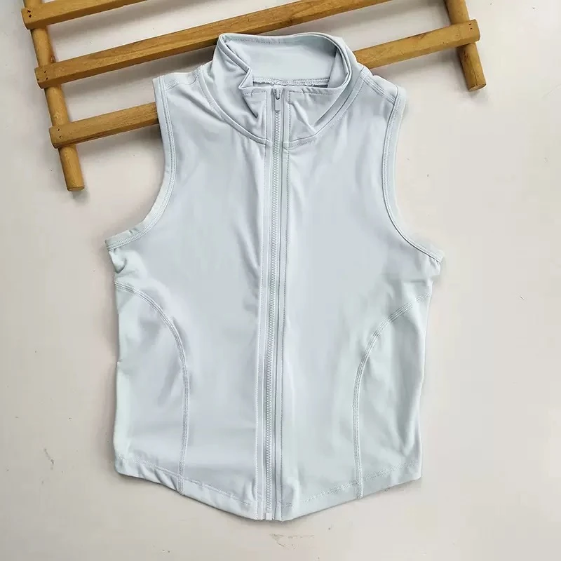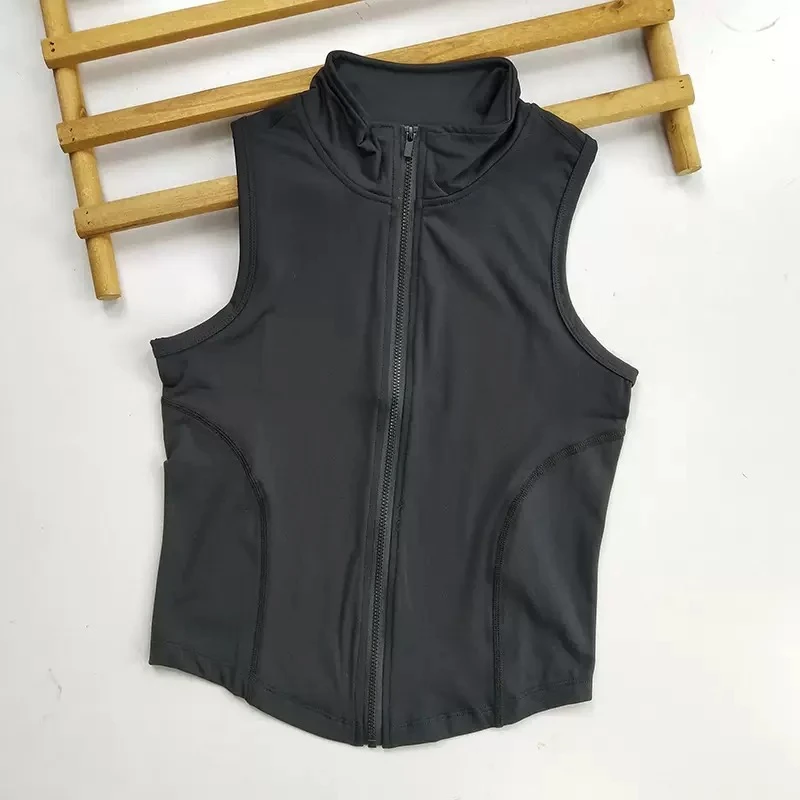 New design zip-up sports vest for training, outerwear, suitable for gym, running, and yoga, sleeveless, quick-drying.