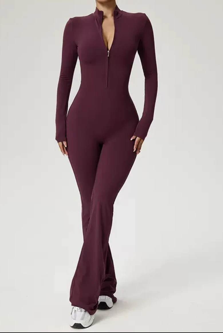 Amazon long-sleeved yoga suit with zipper, soft to the touch, suitable for high-intensity fitness exercises, one-piece tight fit