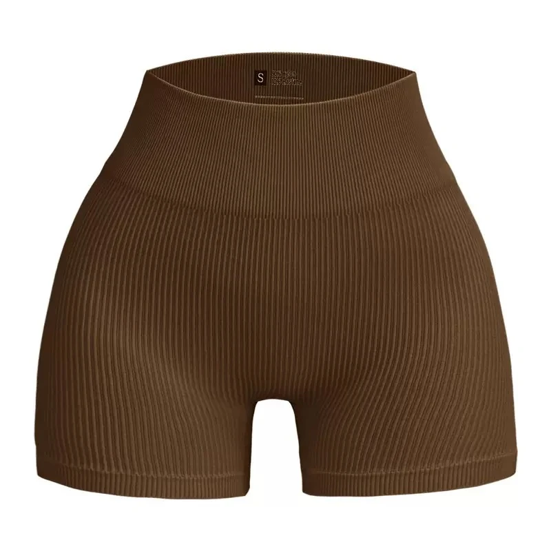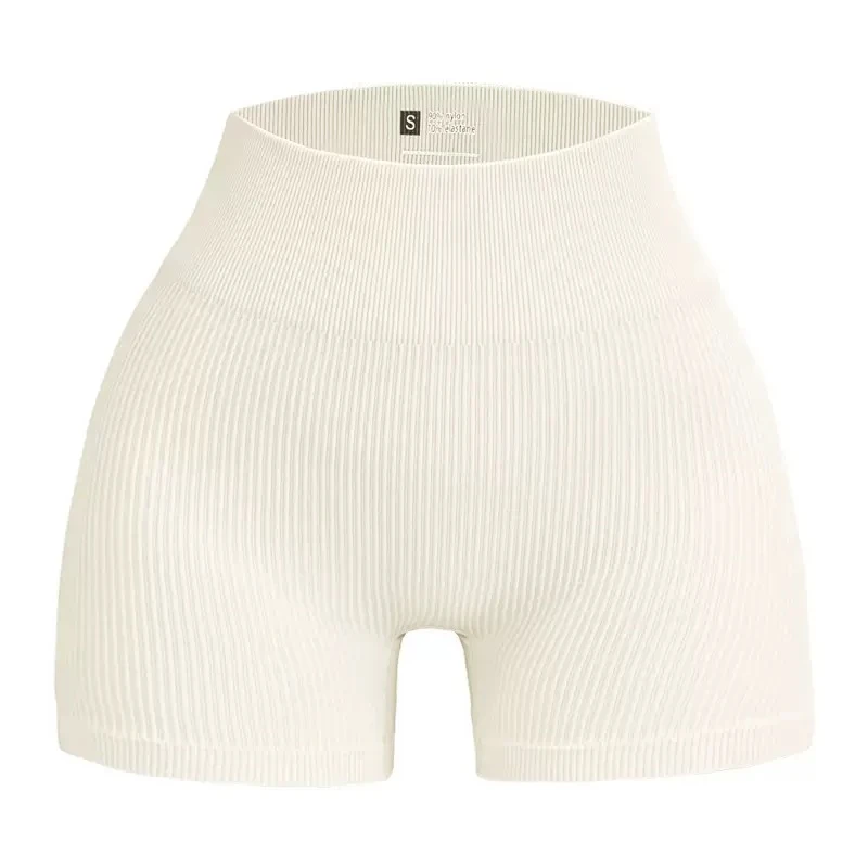 Seamless ribbed yoga shorts, European and American style, three-quarter length yoga pants, quick-drying, seamless athletic leggings for cycling, high-waisted, suitable for fitness